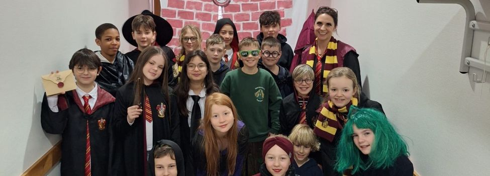 Ein besonderes Highlight erwartete die fünften Klassen: die feierliche Murmelglaseinführung – eine ganz eigene Tradition am Bildungszentrum. In einer stimmungsvollen Zeremonie wurden die neuen Klassen symbolisch in die Schulgemeinschaft aufgenommen. Ganz nach dem Vorbild der Häuser von Hogwarts steht jede 5. Klasse für ein eigenes „Haus“. Mit Stolz nahmen die Schülerinnen und Schüler ihre Murmelgläser entgegen, die fortan im Klassenzimmer ihren Platz finden.