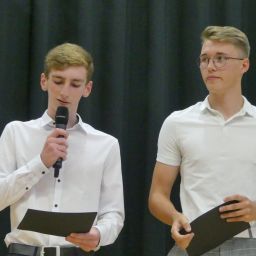 Leistung durften sich Mara Kleiner (10a) und Lucca Oricchio (10a) freuen.