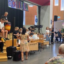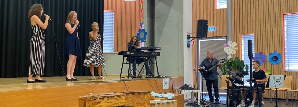 belustigten das Publikum. Die Schulband Brain Zone Music sorgte für gute
