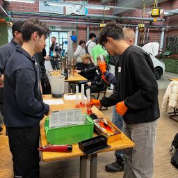 Nach einer kurzen Begrüßung durch Schulleiter Herrn Österle ging es ohne Umwege in die Praxis. In kleinen Gruppen aufgeteilt, durften die Jugendlichen verschiedene Ausbildungswerkstätten erkunden – und vor allem selbst Hand anlegen. Ob als Anlagenmechaniker, Maurer, Zimmerer, Friseur, Kfz-Mechatroniker oder Elektriker: Für jeden Geschmack war etwas dabei.