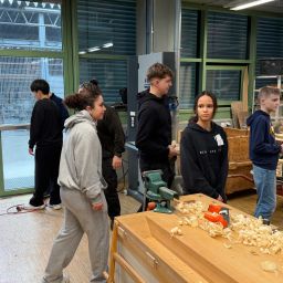 Statt nur zuzuschauen, fertigten die Schülerinnen und Schüler eigene kleine Werkstücke an. Dabei wurde gehämmert, geschraubt, gesägt und frisiert – und ganz nebenbei so mancher verborgene Berufswunsch entdeckt. Besonders spannend war für viele der direkte Austausch mit den Ausbildern. Sie gaben nicht nur Einblicke in ihren Berufsalltag, sondern auch wertvolle Tipps für Praktikum und Bewerbung.