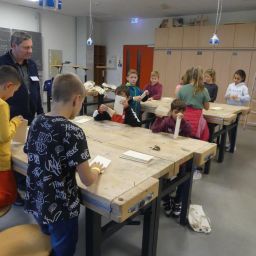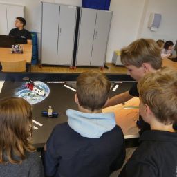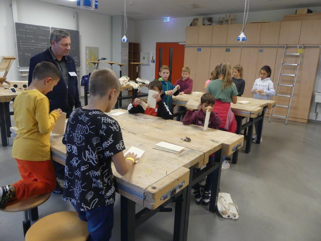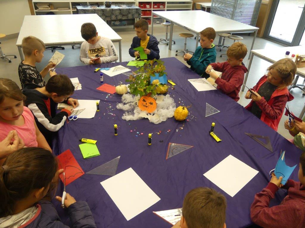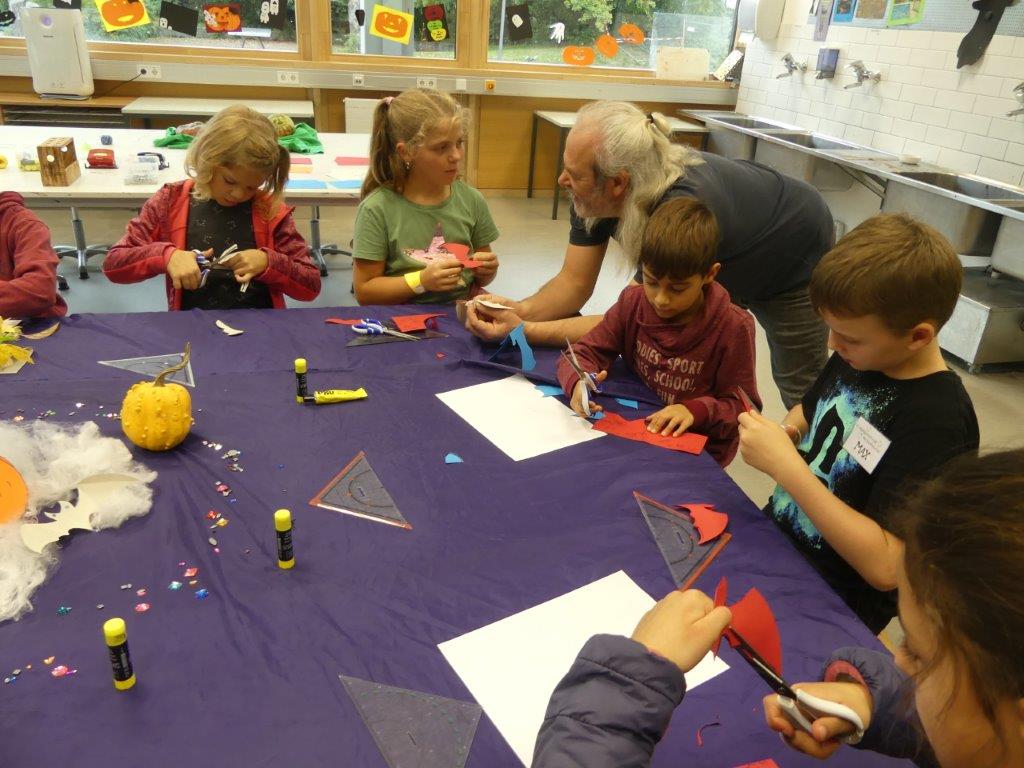 In drei Durchgängen – Corona geschuldet – durchliefen, unter Führung einer Lehrkraft, in jeweils 2 Gruppen, die 4. Klässler, die für sie vorbereiteten Stationen. Die Kinder konnten im Chemieraum selbst Handcreme herstellen, in Technik ihr Namenschild mit CAD fräsen, im Kunstraum etwas für Halloween basteln, sie durften in Robotik reinschnuppern und wurden von unseren 7. Klässlern ins Programmieren und Bauen von Robotern eingeführt, in Musik wurde mit Xylophonen musiziert, im Nähraum des hauswirtschaflichen Bereiches entstanden Anhänger mit den Anfangsbuchstaben der Namen, die Rallye fand dann ein offenes Ende in der Sporthalle, in der von den Sportlehrkräften die unterschiedlichsten Spiel- und Bewegungsmöglichkeiten vorbereitet waren, die die Kinder nutzen konnten, bis sie von ihren Eltern dort wieder abgeholt wurden. Im ganzen Schulhaus war ein fröhliches, buntes Treiben zu beobachten, der Spaß den die Kinder hatten, war ihnen deutlich anzusehen.
