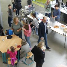 Während die Kinder die Stationen durchliefen, wurden die Eltern im Hörsaal von der Schulleitung über die Besonderheiten des Konzeptes am BZM informiert. Im Anschluss besichtigten sie gemeinsam mit Frau Wiedmann die grünen Klassenzimmer und wurden danach vom Förderverein mit Kaffee und Kuchen verwöhnt.