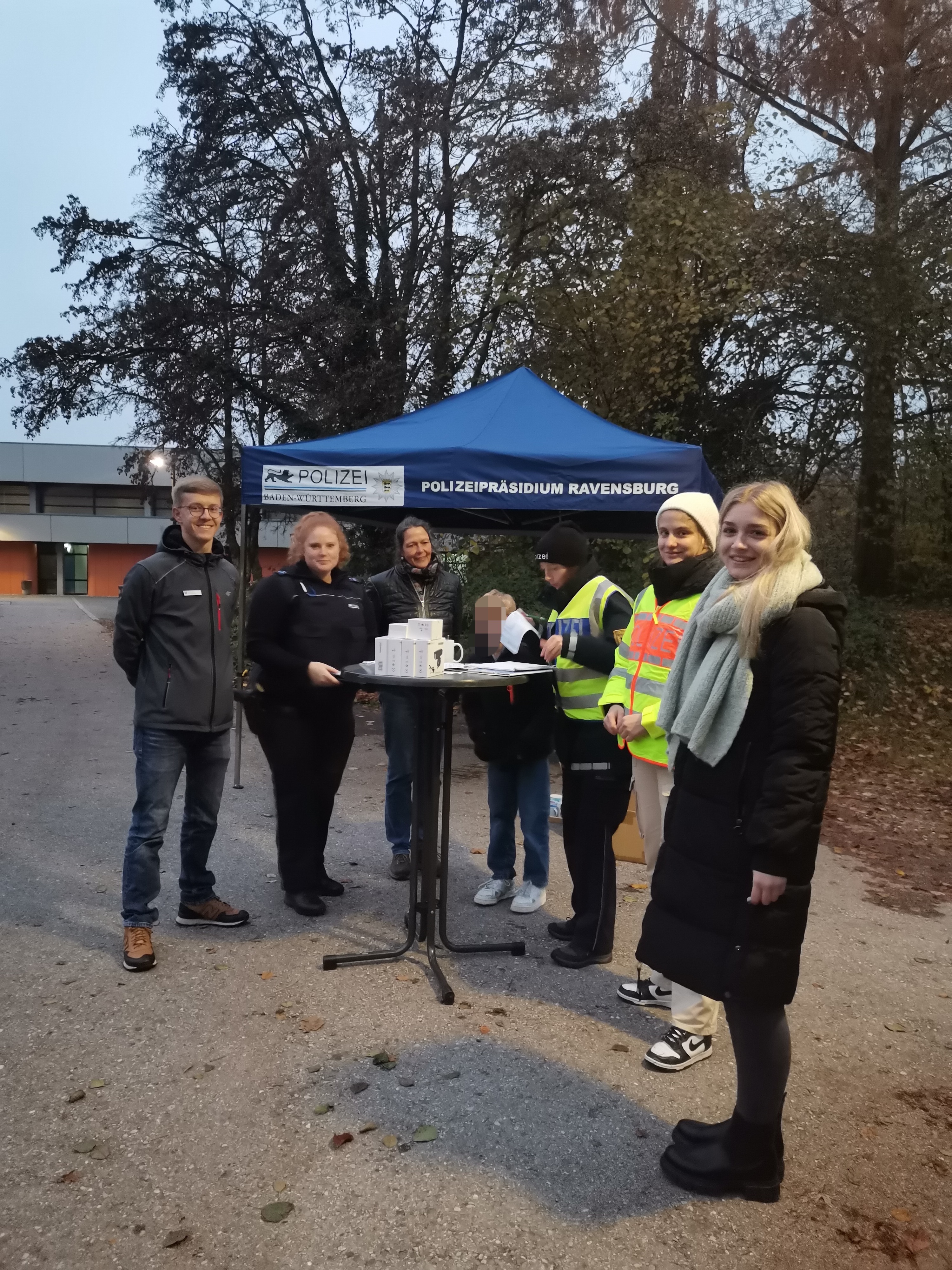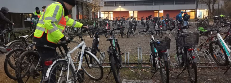 Einige Beamte des Polizeipräsidiums Ravensburg führten am Donnerstag, den 23.11.23 eine Fahrradkontrolle am Bildungszentrum Meckenbeuren durch.