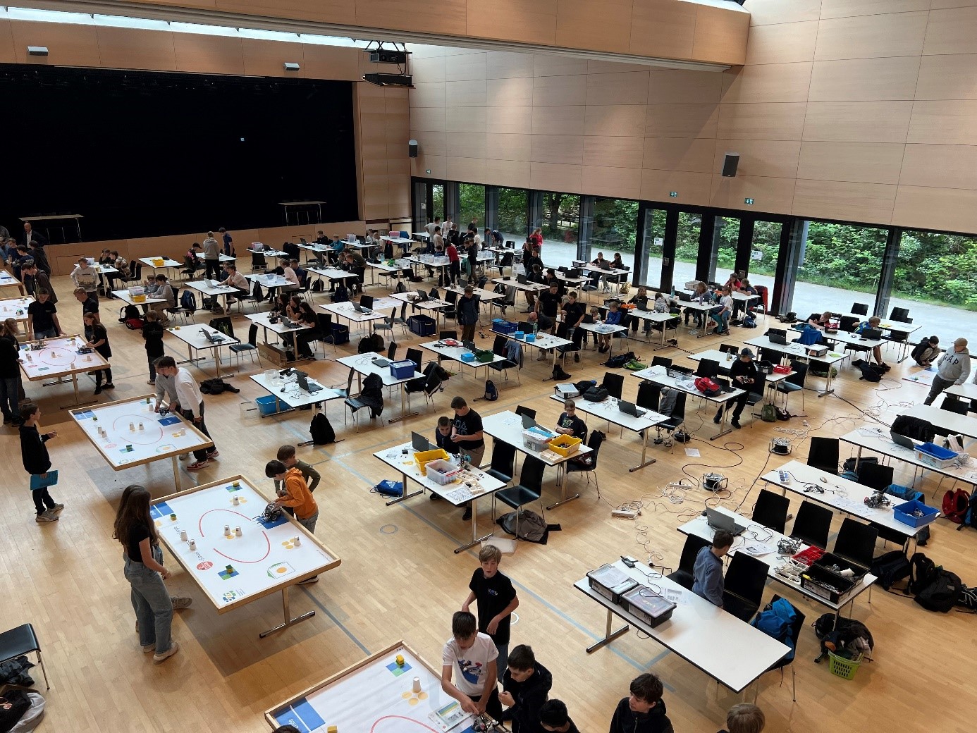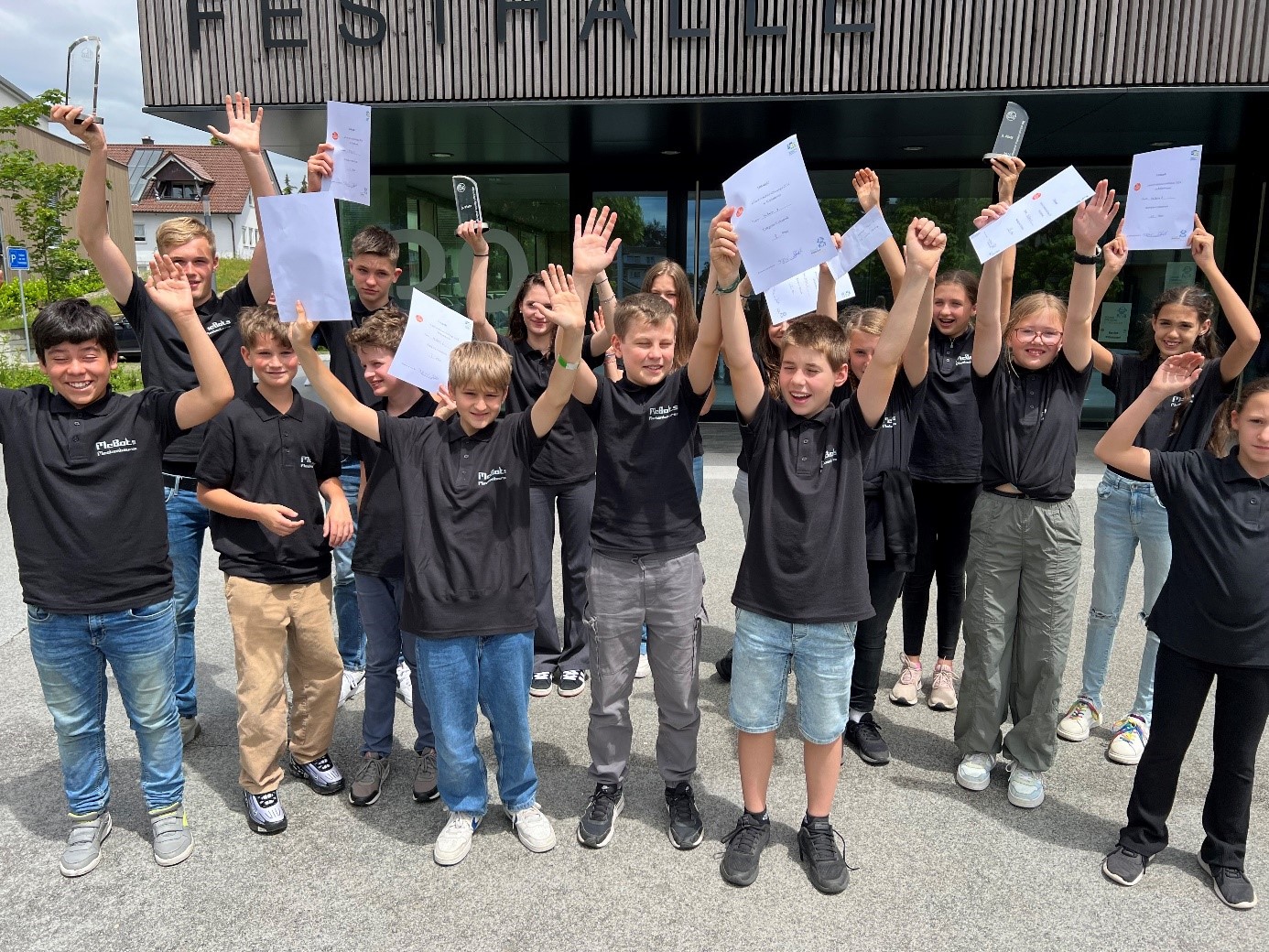 Mit drei Pokalen kehren die 16 Schüler des Bildungszentrums Meckenbeuren erfolgreich vom Robotikwettkampf in Kressbronn zurück. Die ifm-challenge bildet den jährlichen Höhepunkt der vielen Arbeit, die unsere Schüler in den zwei Robotik AGs geleistet haben. Unter dem Motto „Mit Freude an Wissenschaft und Technik“ bauten und programmierten die sieben Mädchen und neun Jungen kleine Lego-Mindstorms-Roboter und lösten anspruchsvolle Aufgaben.