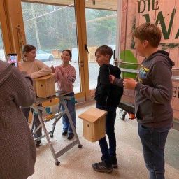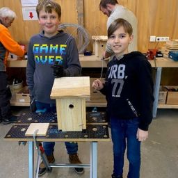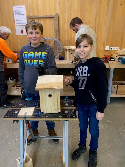 Dort durften wir unter fachmännischer Anleitung Vogelhäuser für Meisen bauen. Wir arbeiteten begeistert und voller Eifer an den Häusern, hämmerten, schraubten und halfen uns immer gegenseitig, sodass wir am Ende stolz auf unsere Vogelhäuser schauen konnten. Vielen Dank an Sebastian und Fabian von Forst BW.