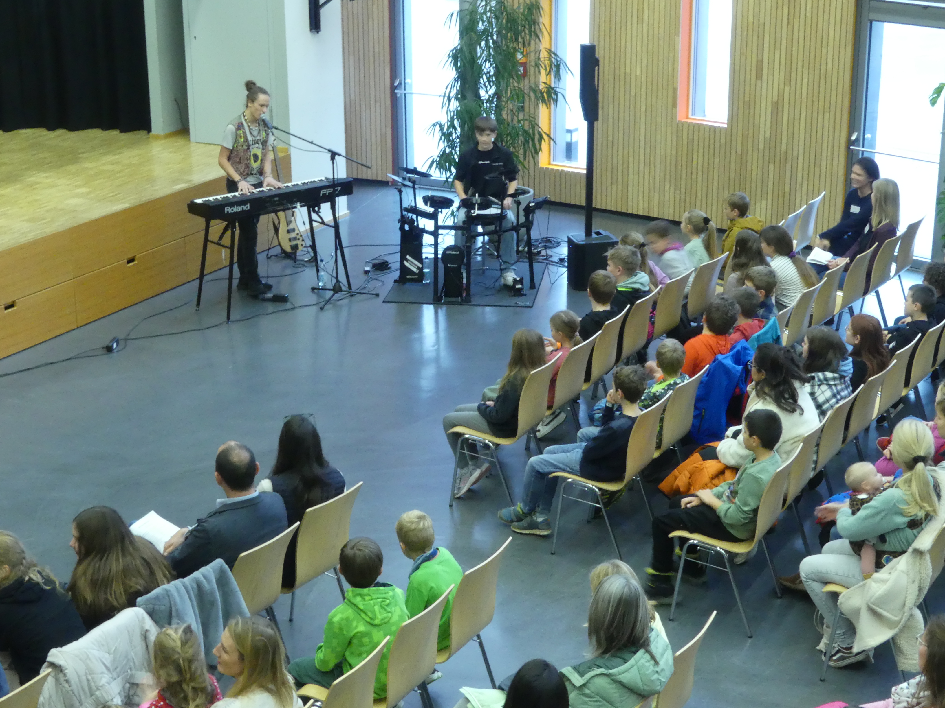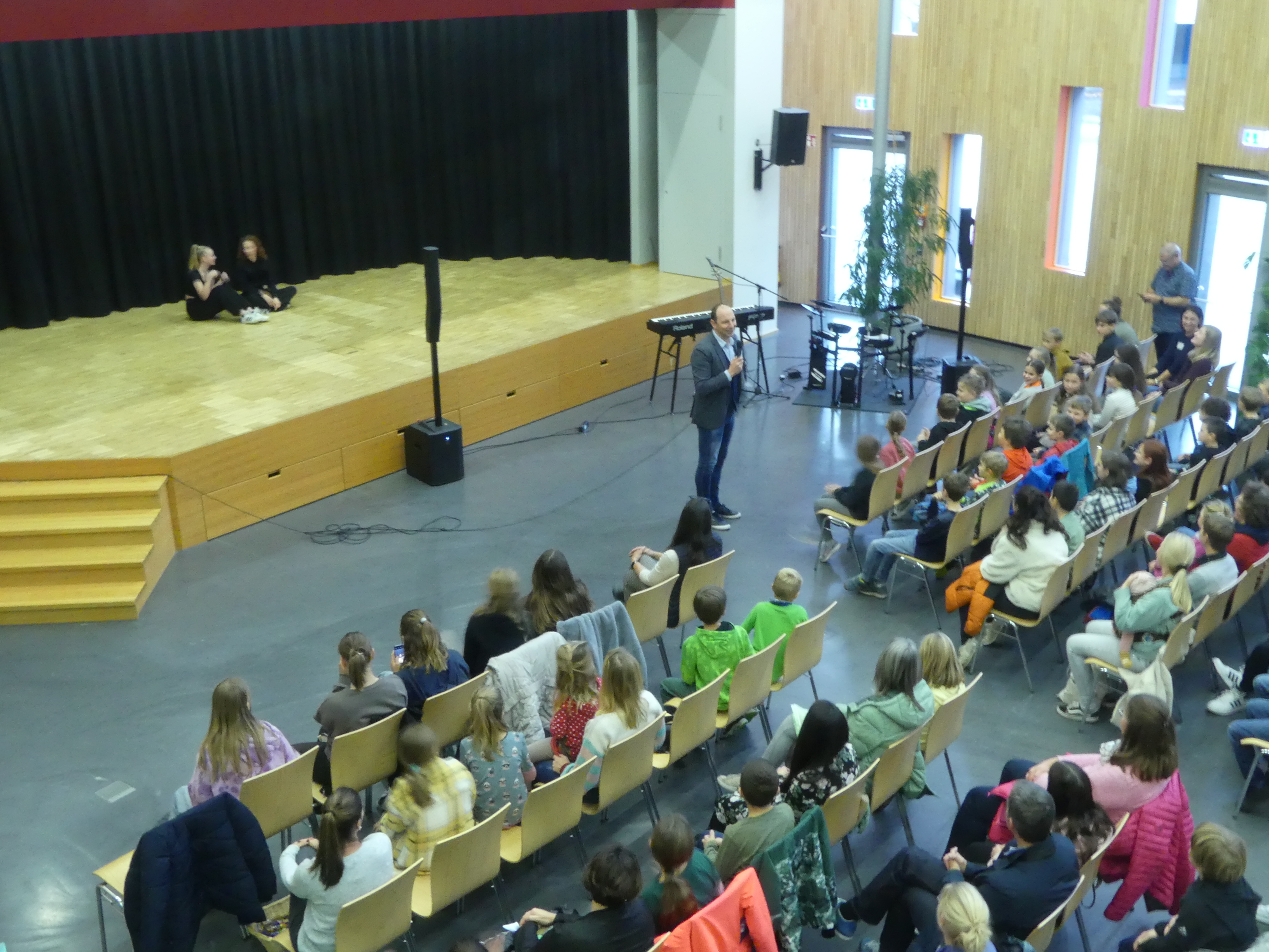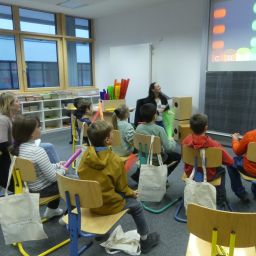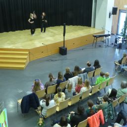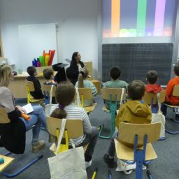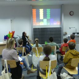 Doch auch für die Eltern der teilnehmenden Kinder war etwas geboten: Frau Wiedmann und Herr Walker luden Interessierte in den Hörsaal ein und informierten über das pädagogische Konzept unserer Schule.
