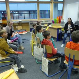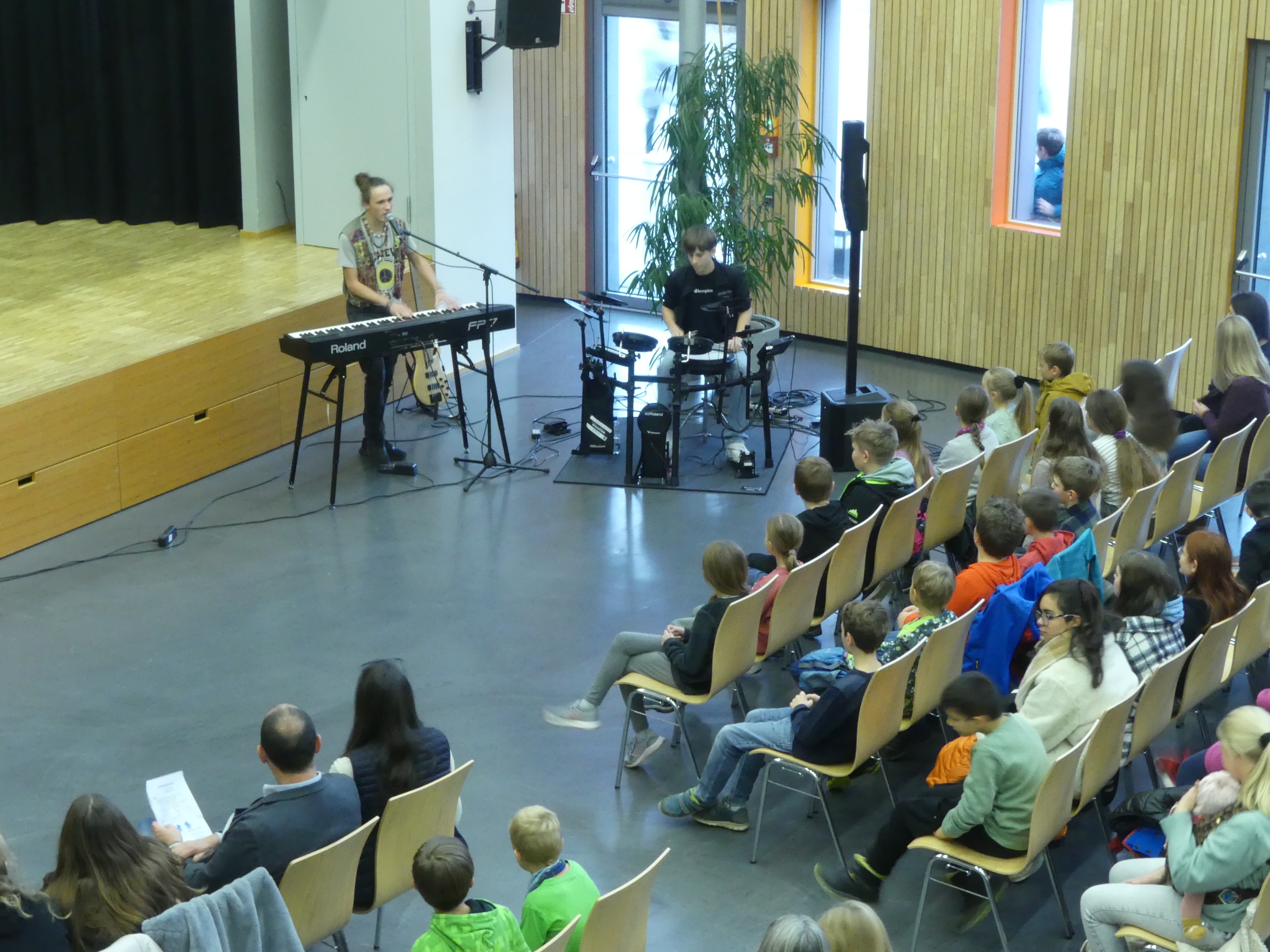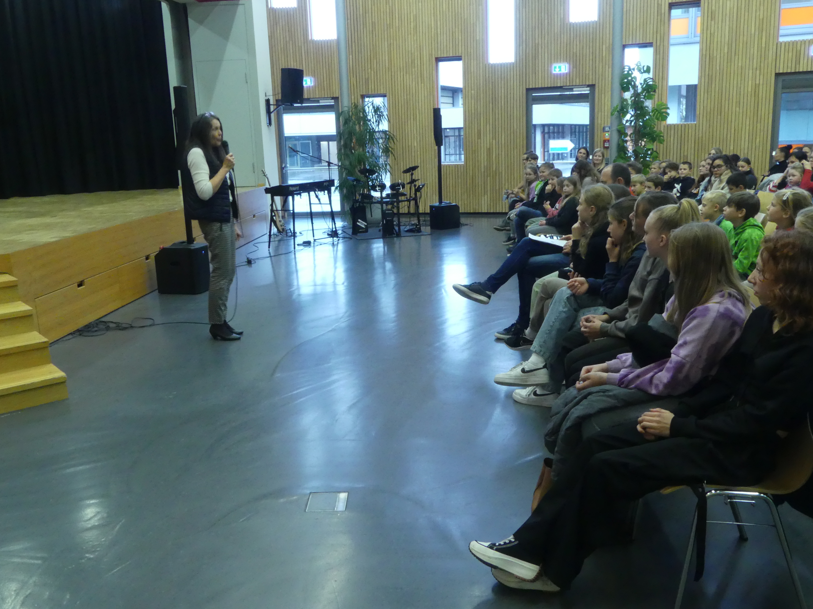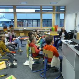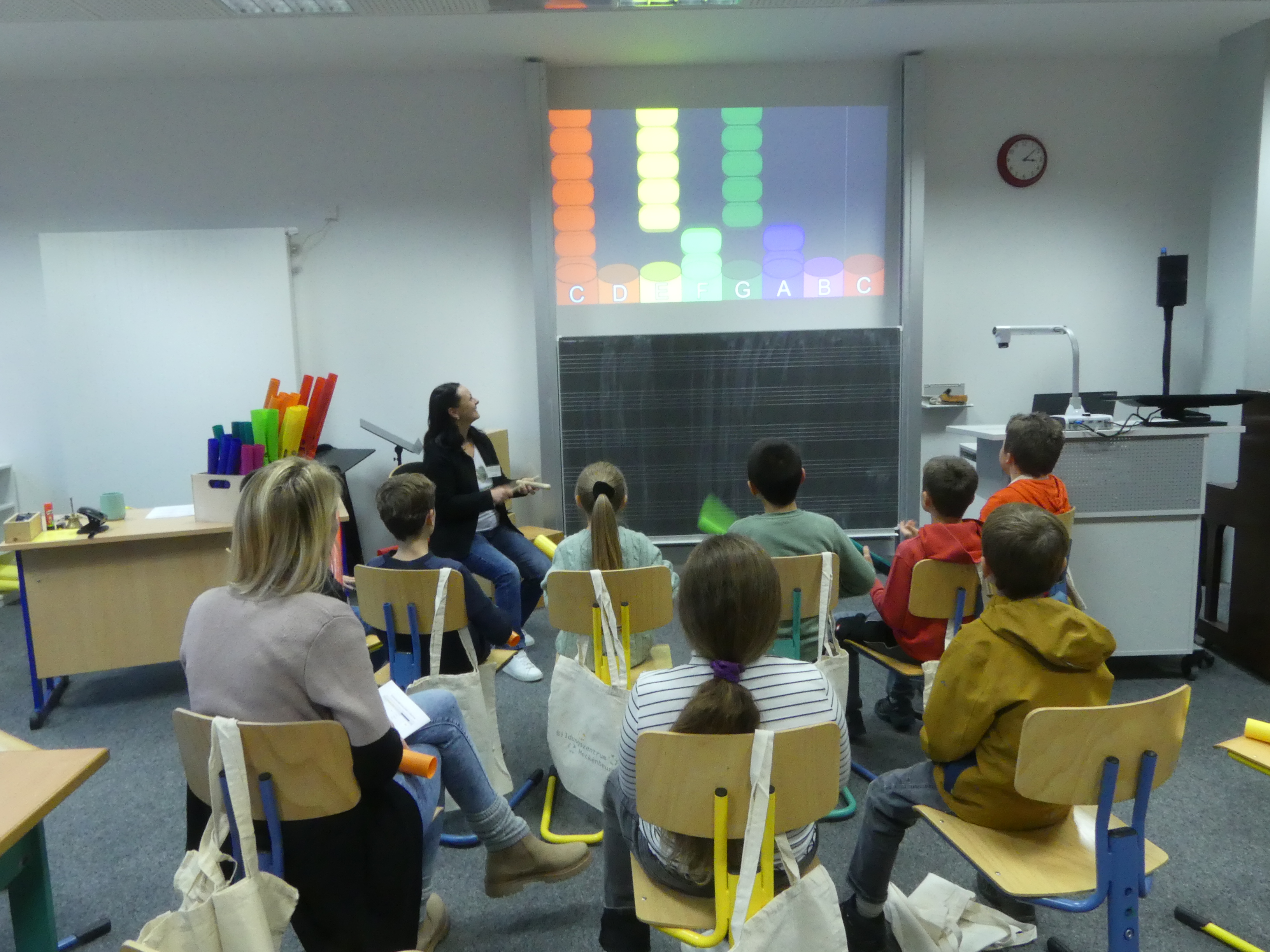 Doch auch für die Eltern der teilnehmenden Kinder war etwas geboten: Frau Wiedmann und Herr Walker luden Interessierte in den Hörsaal ein und informierten über das pädagogische Konzept unserer Schule.