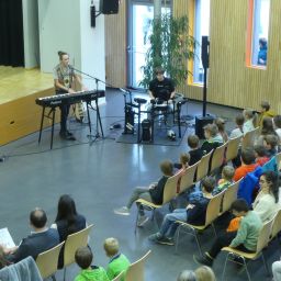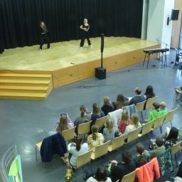 Nach der Begrüßung durch die Schulleiterin Frau Wiedmann, die mit rockigen Musikstücken der Schulband und einer Tanzeinlage untermalt wurde, teilte Konrektor Alexander Walker die Grundschüler in Gruppen ein und startete die Rallye offiziell.