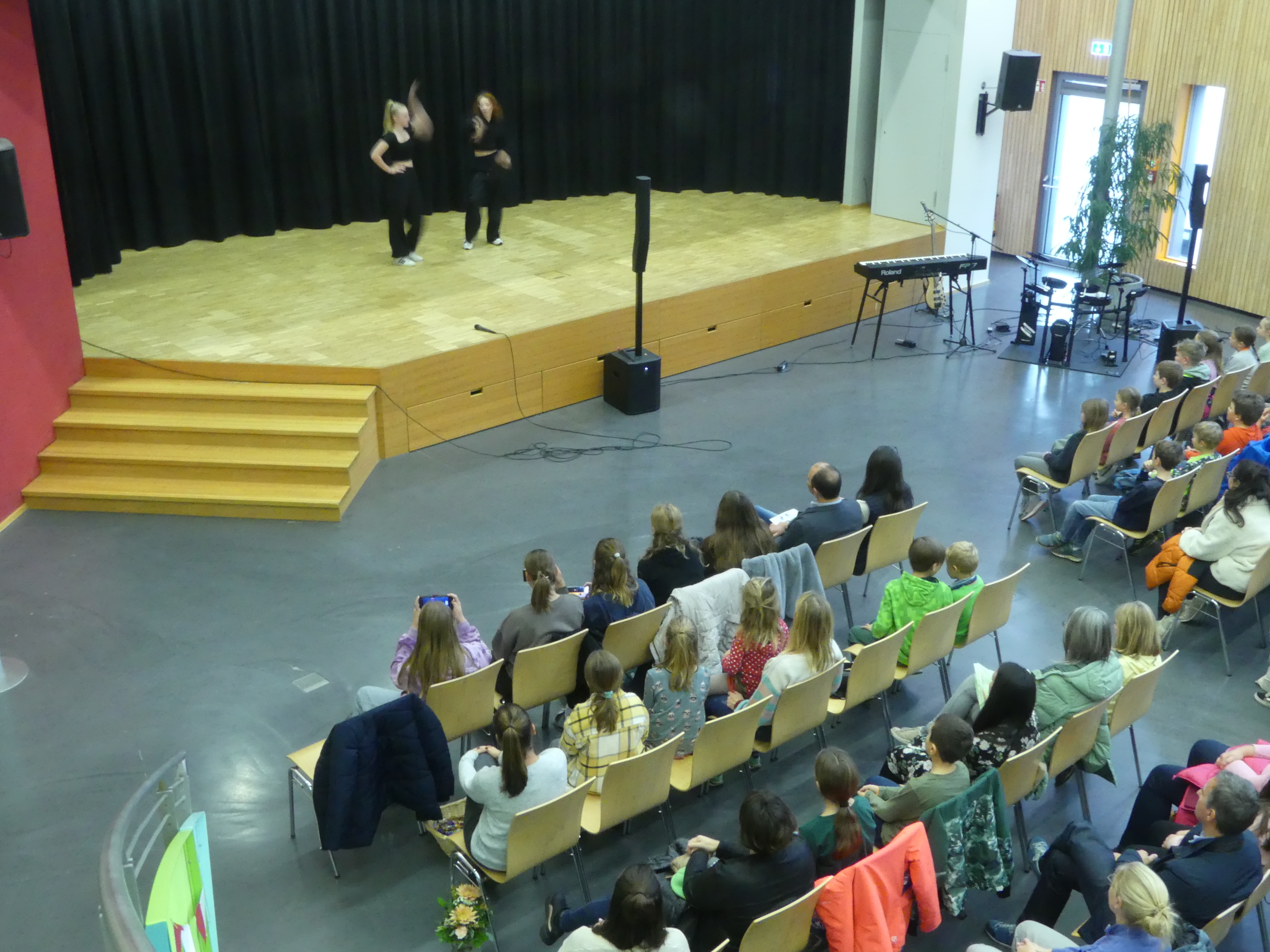 Wer sich danach bei Kaffee und Kuchen stärken oder einfach im gemütlichen Beisammensein mit anderen Eltern oder den anwesenden Lehrern austauschen wollte, konnte dies in der Eingangshalle tun, dank der reichhaltigen Bewirtung durch den Schulförderverein.