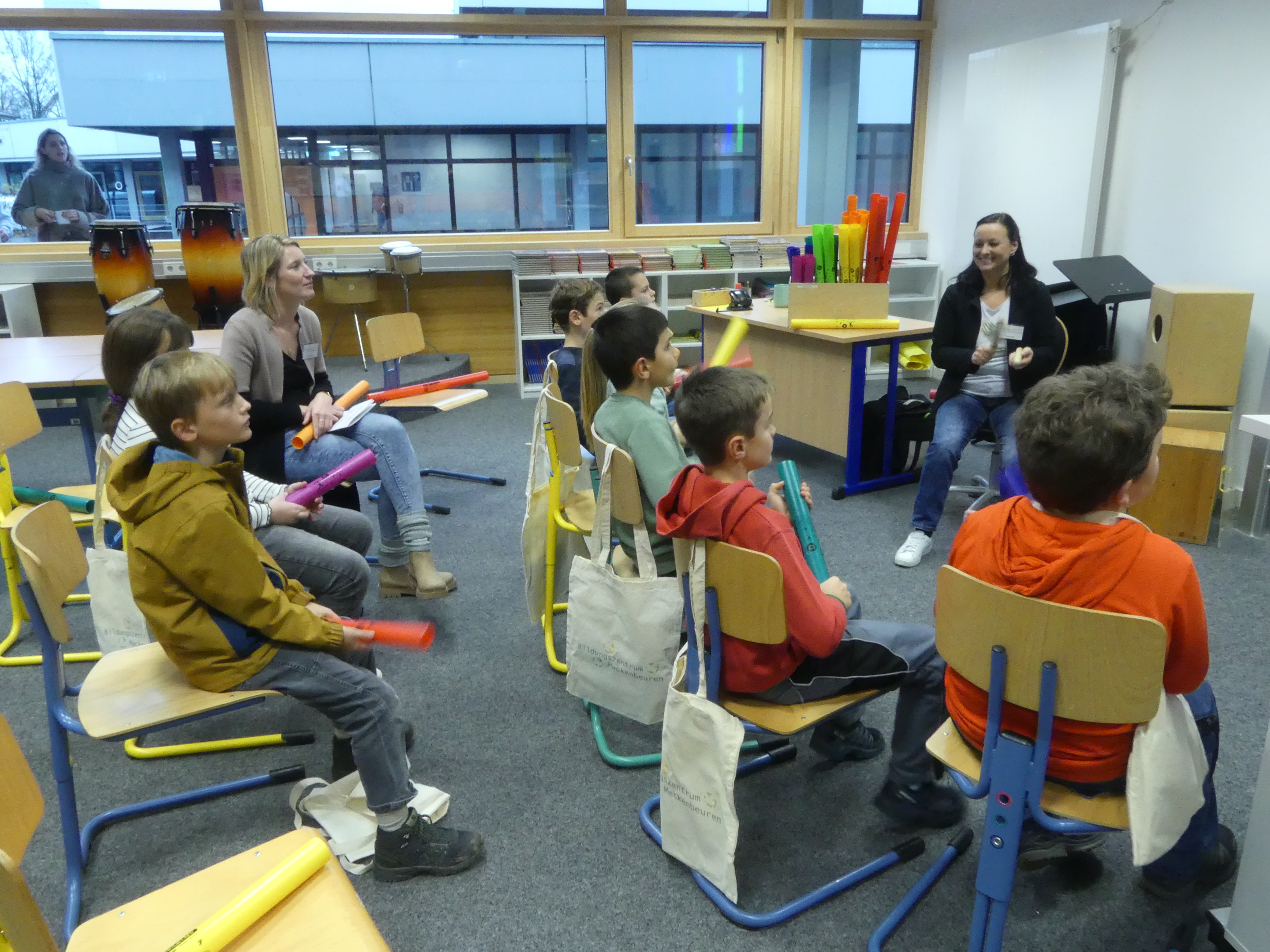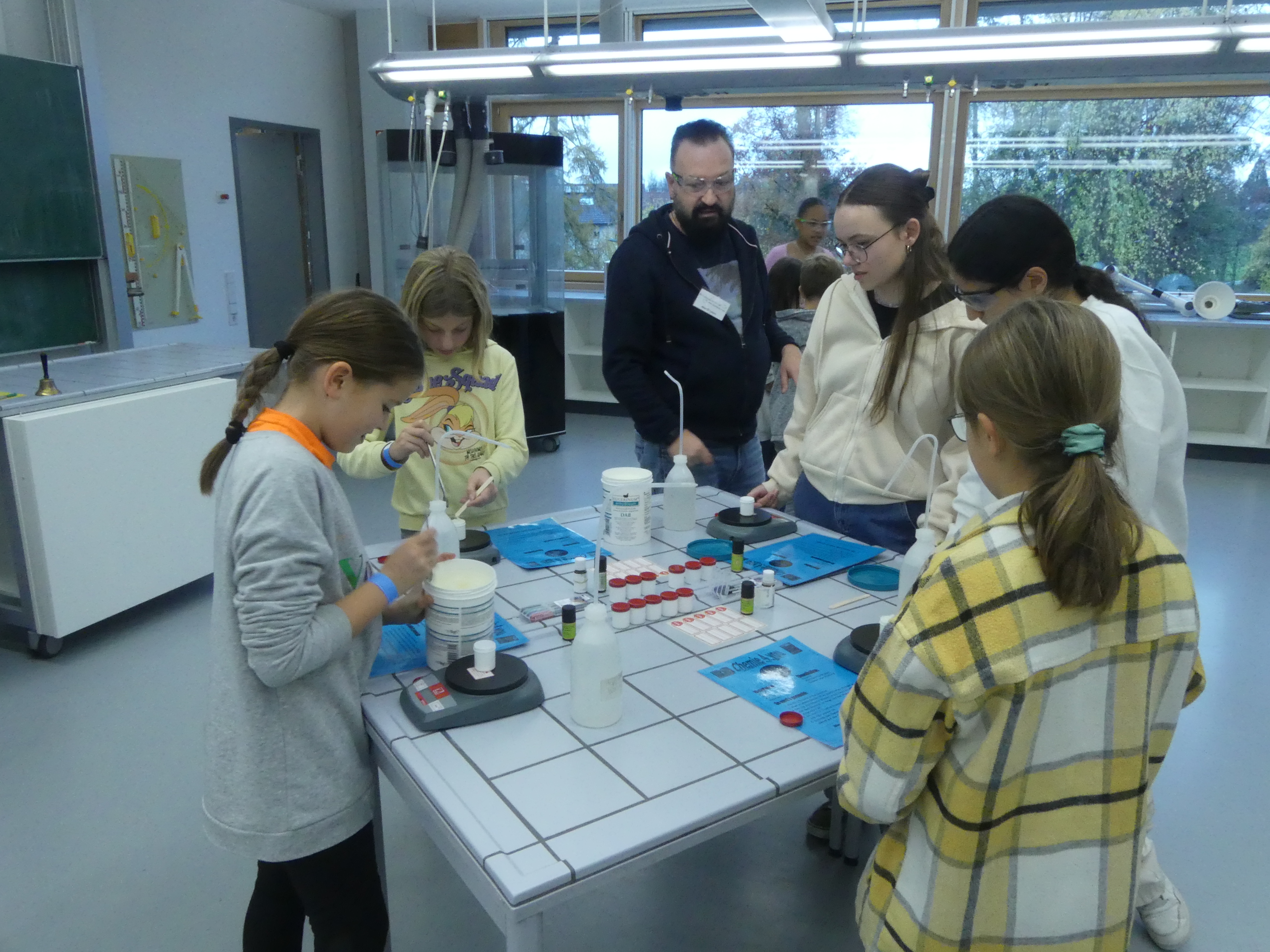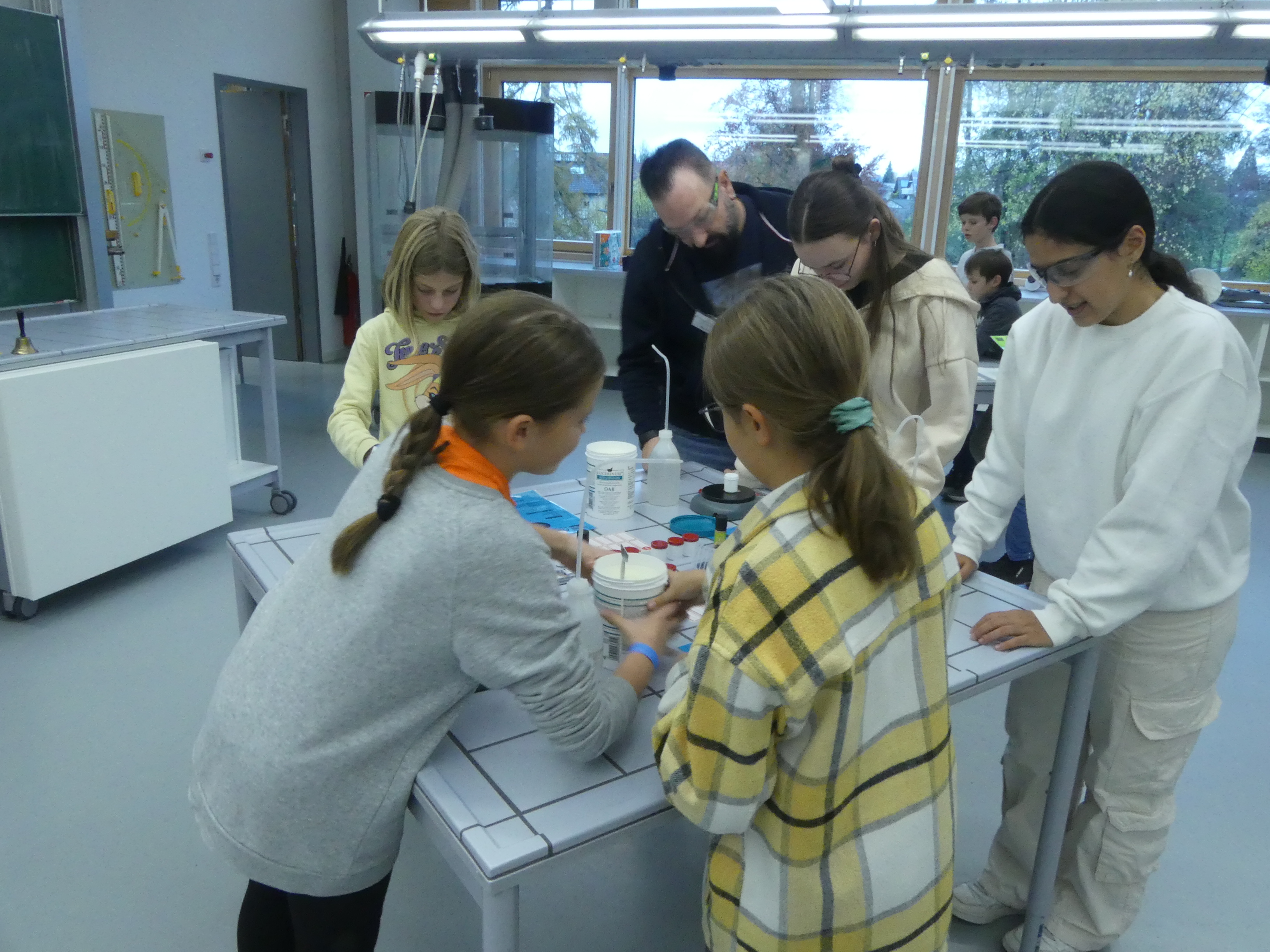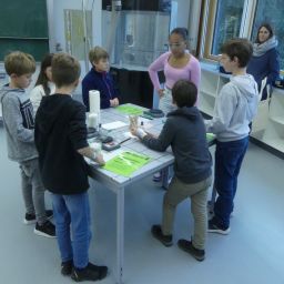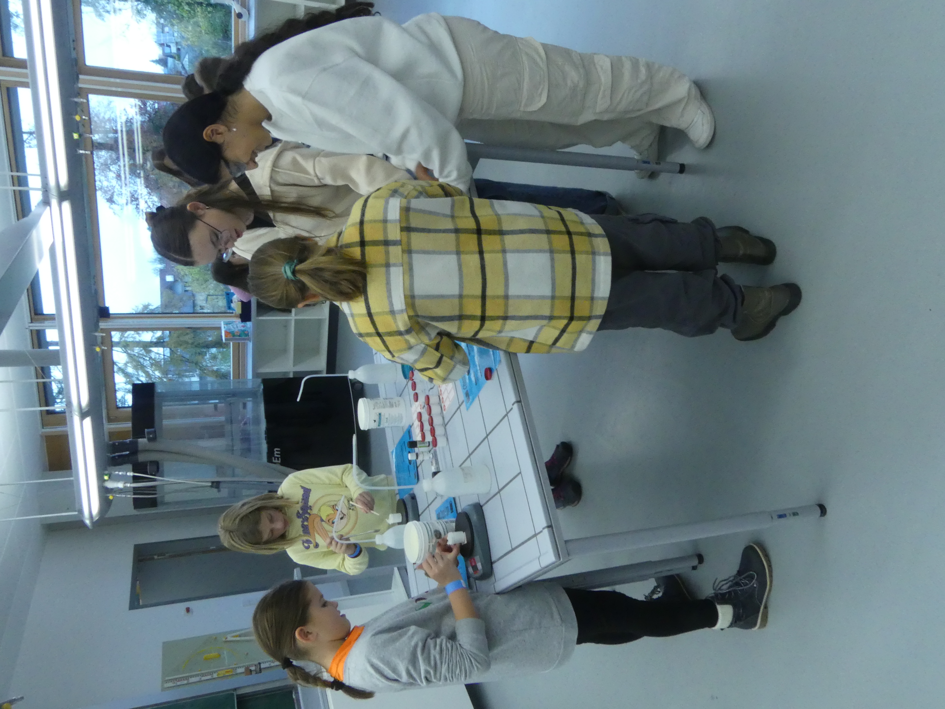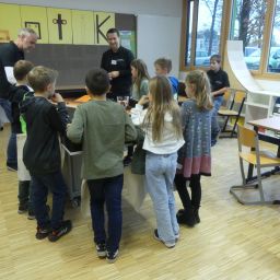 52 Schülerinnen und Schüler der Grundschulen aus Meckenbeuren und Umgebung hatten sich angemeldet und konnten sowohl einige der Lehrkräfte der Schule kennenlernen als auch Eindrücke vom Schulgebäude und insbesondere von den Fachräumen sammeln.