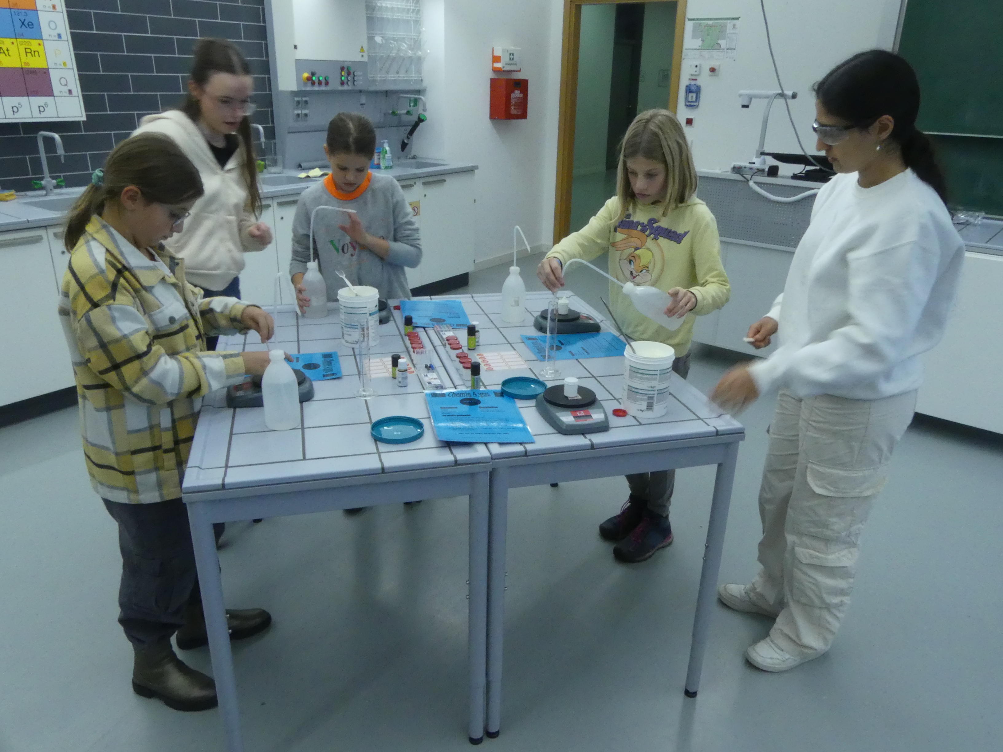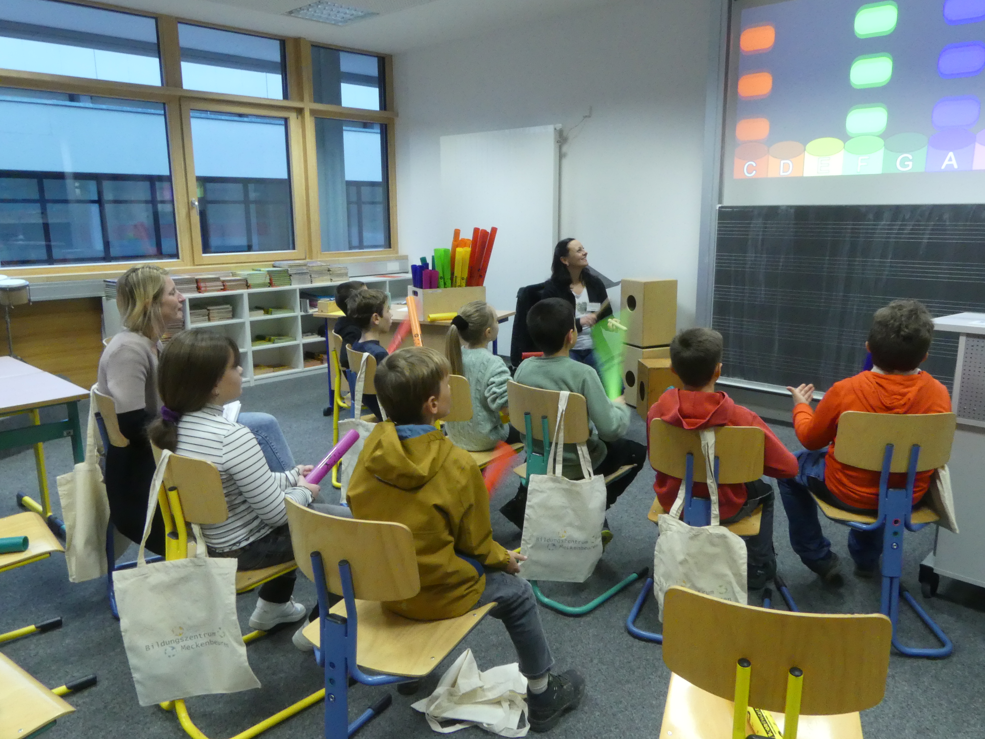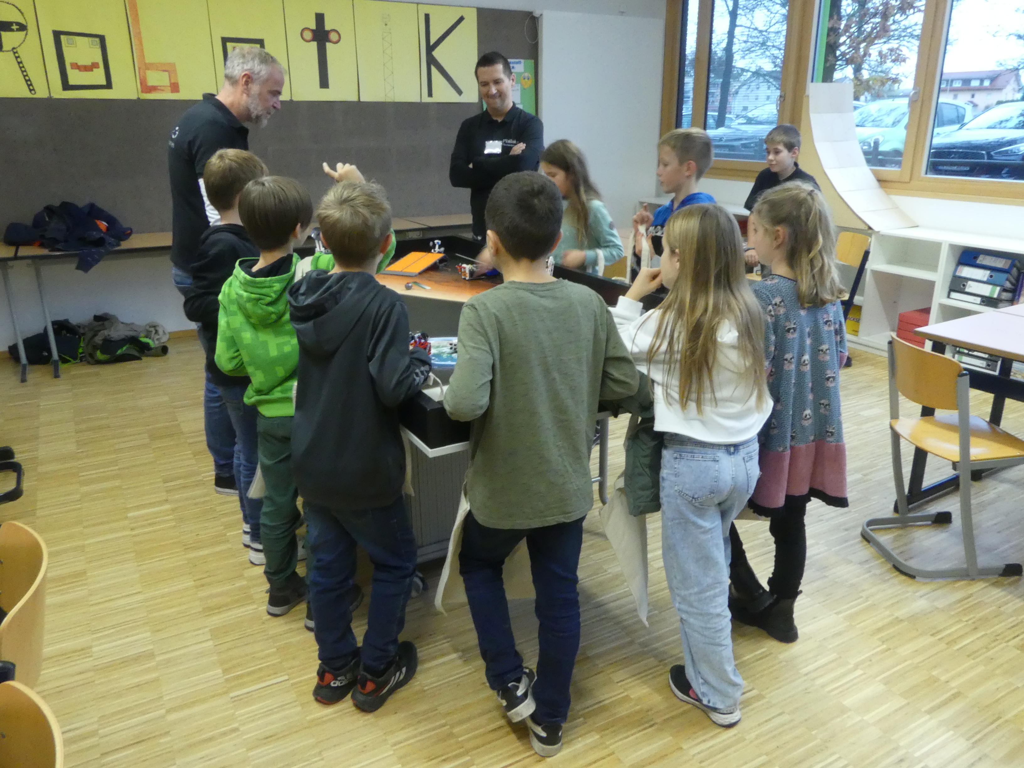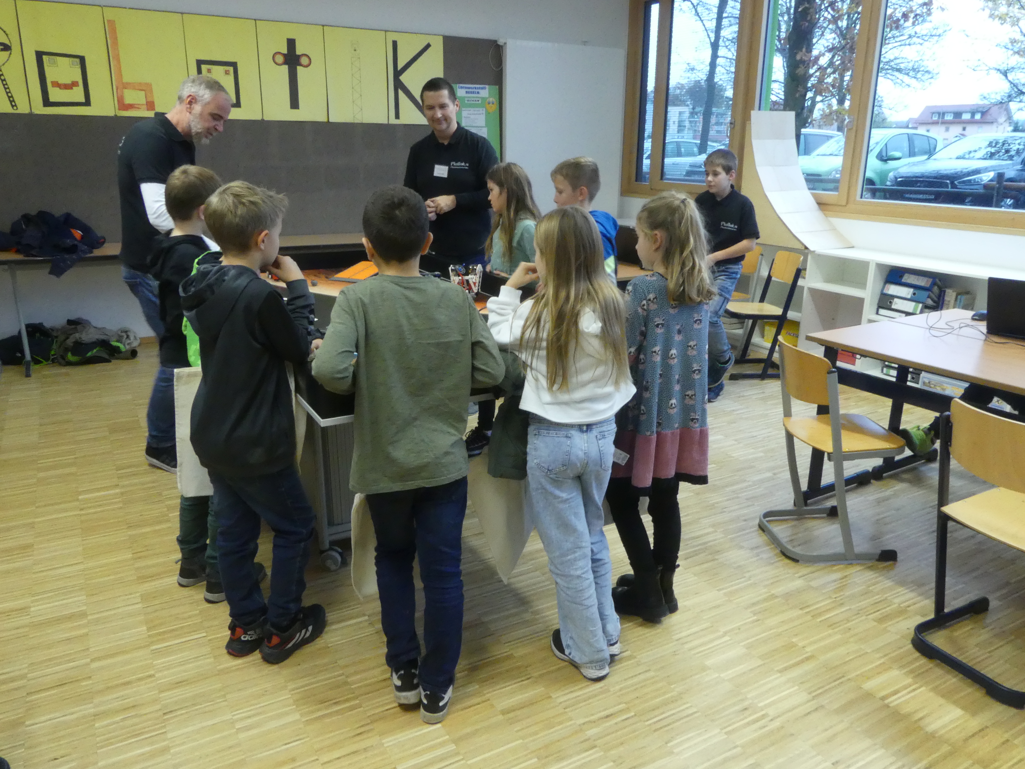 52 Schülerinnen und Schüler der Grundschulen aus Meckenbeuren und Umgebung hatten sich angemeldet und konnten sowohl einige der Lehrkräfte der Schule kennenlernen als auch Eindrücke vom Schulgebäude und insbesondere von den Fachräumen sammeln.