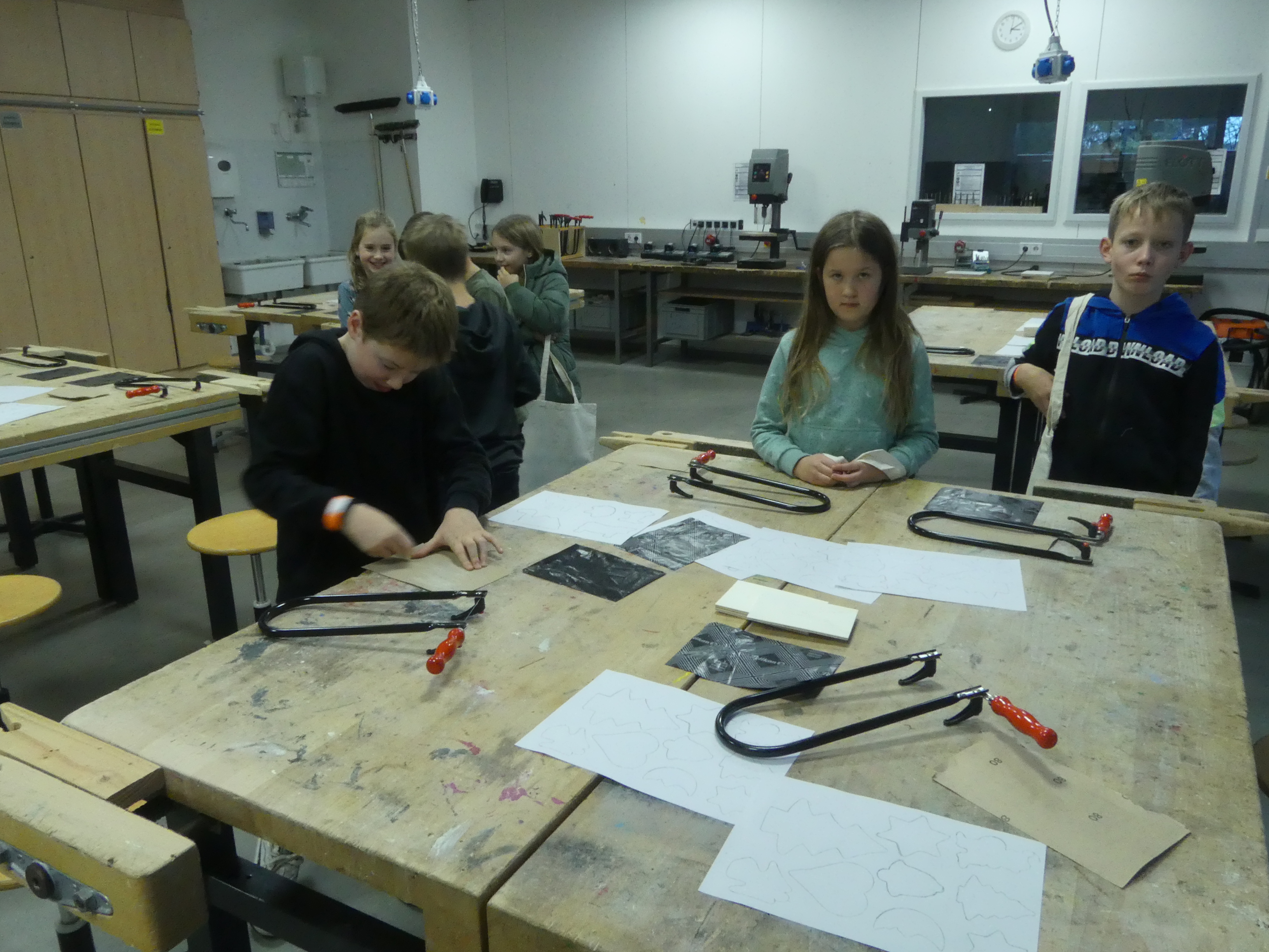 So durften sie im Kunstraum bei der Herstellung von Weihnachtsschmuck gestalterisch tätig werden, im Technikraum ihr Geschick bei einer Laubsägearbeit zeigen, im Chemieraum Pfefferminzbonbons und Hautcreme herstellen, im Musiksaal eine Melodie einüben, im Nähraum einen Schlüsselanhänger anfertigen und im Zimmer der Robotik-AG an der Programmierung eines Roboters mitwirken.