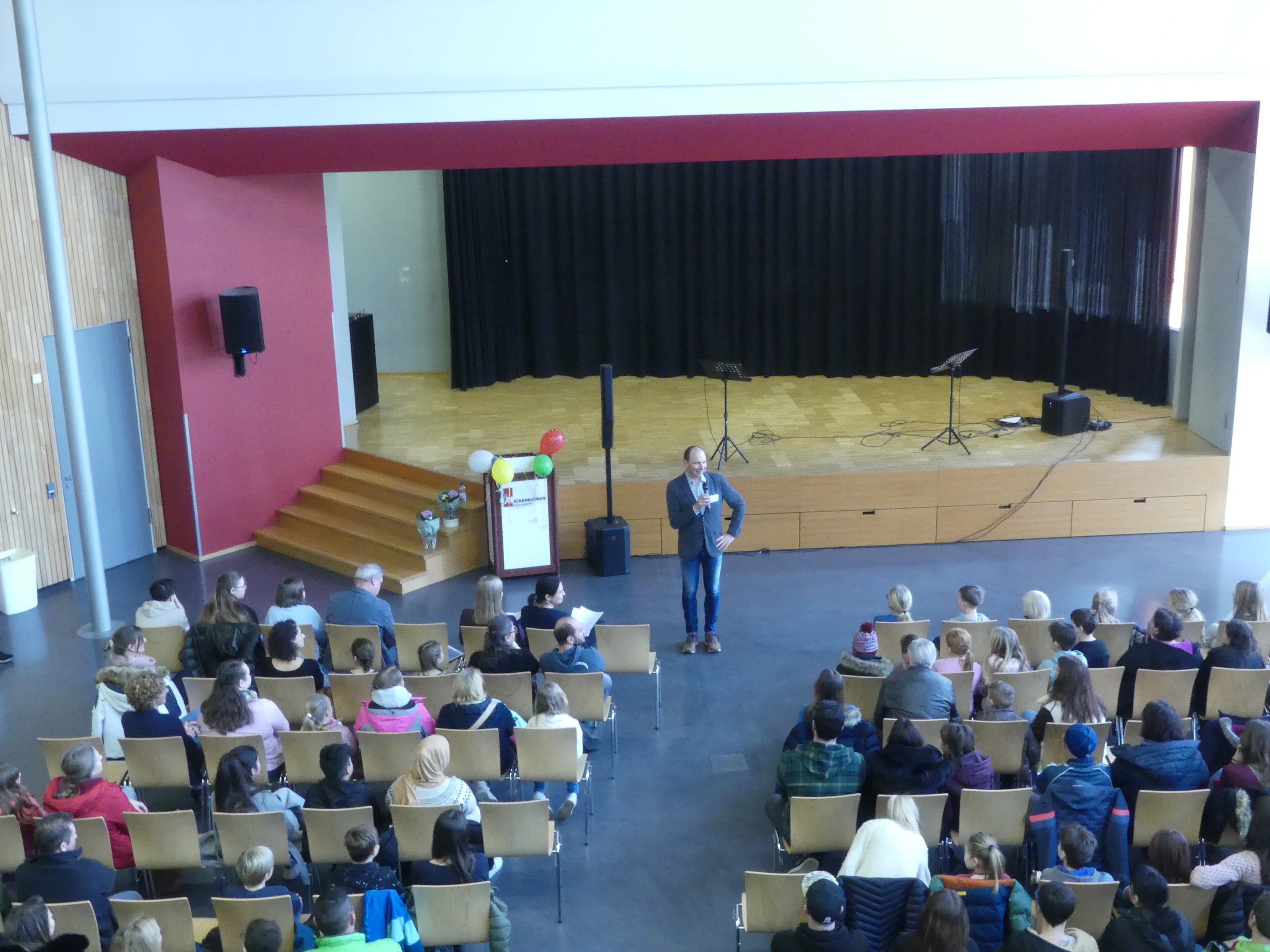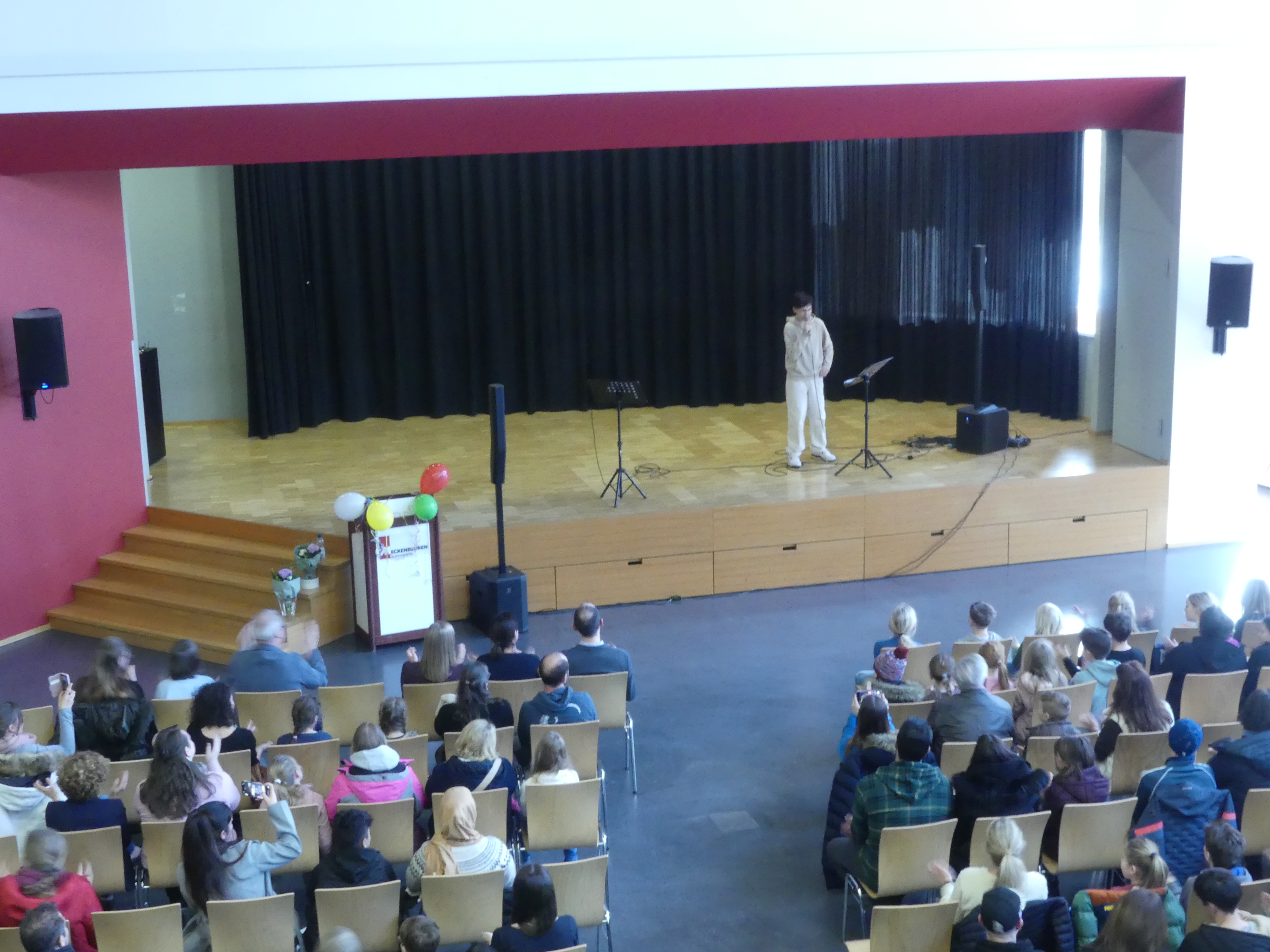 der Begrüßung, die mit mehreren Gesangstücken der Schulband untermalt wurde, teilte