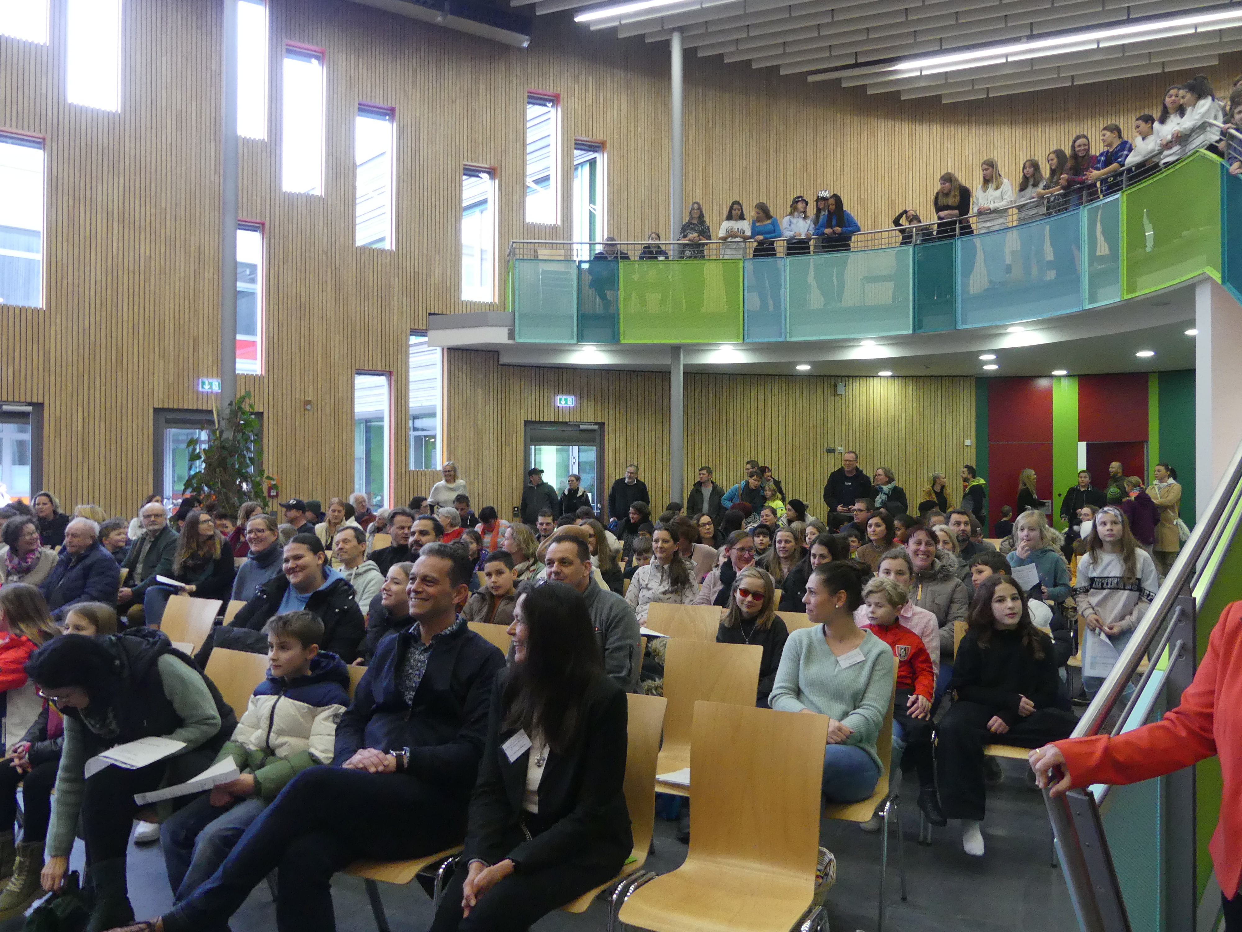Nach dem Auftakt gab es im ganzen Schulhaus viele spannende Aktivitäten zu entdecken. Die Schüler*innen konnten sich bei Workshops in den Bereichen Robotik, Naturwissenschaften austoben und ihrer Kreativität beim Nagel Design, Kinderschminken und bei farbenfrohen Kunstangeboten freien Lauf lassen. Der Schulhund Blue begeisterte die Besucher mit interaktiven Tricks und in der offenen Sporthalle konnte man selbst aktiv werden.
