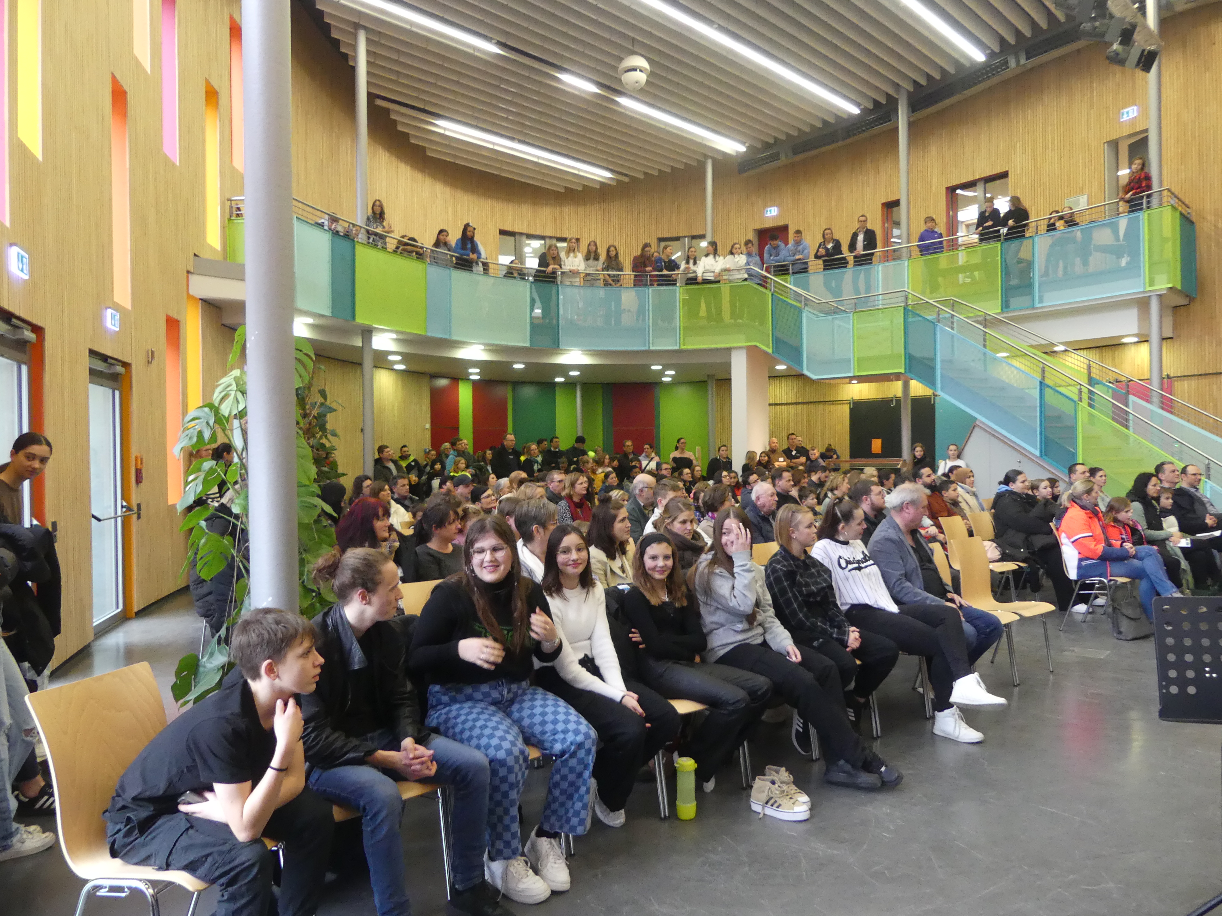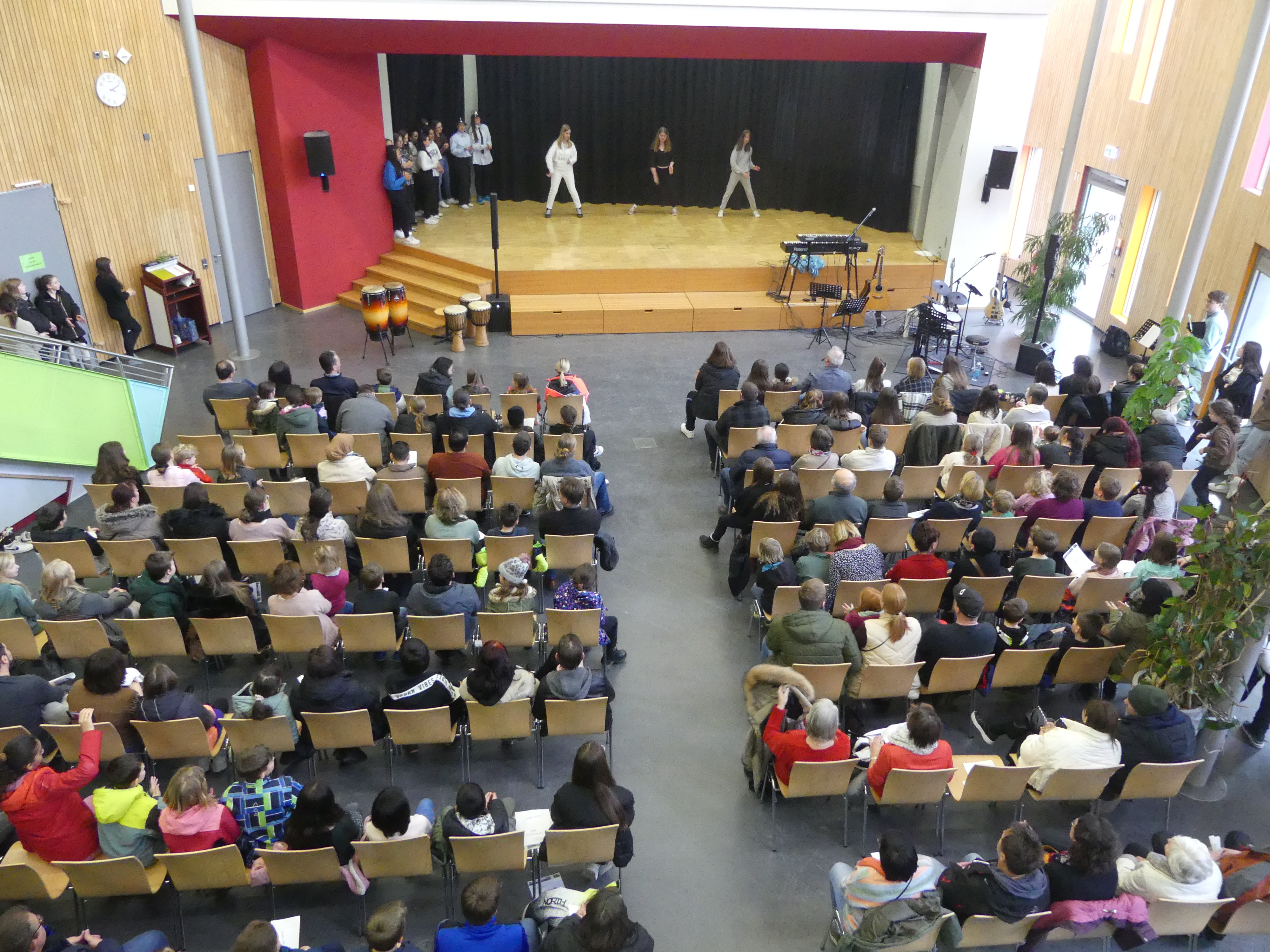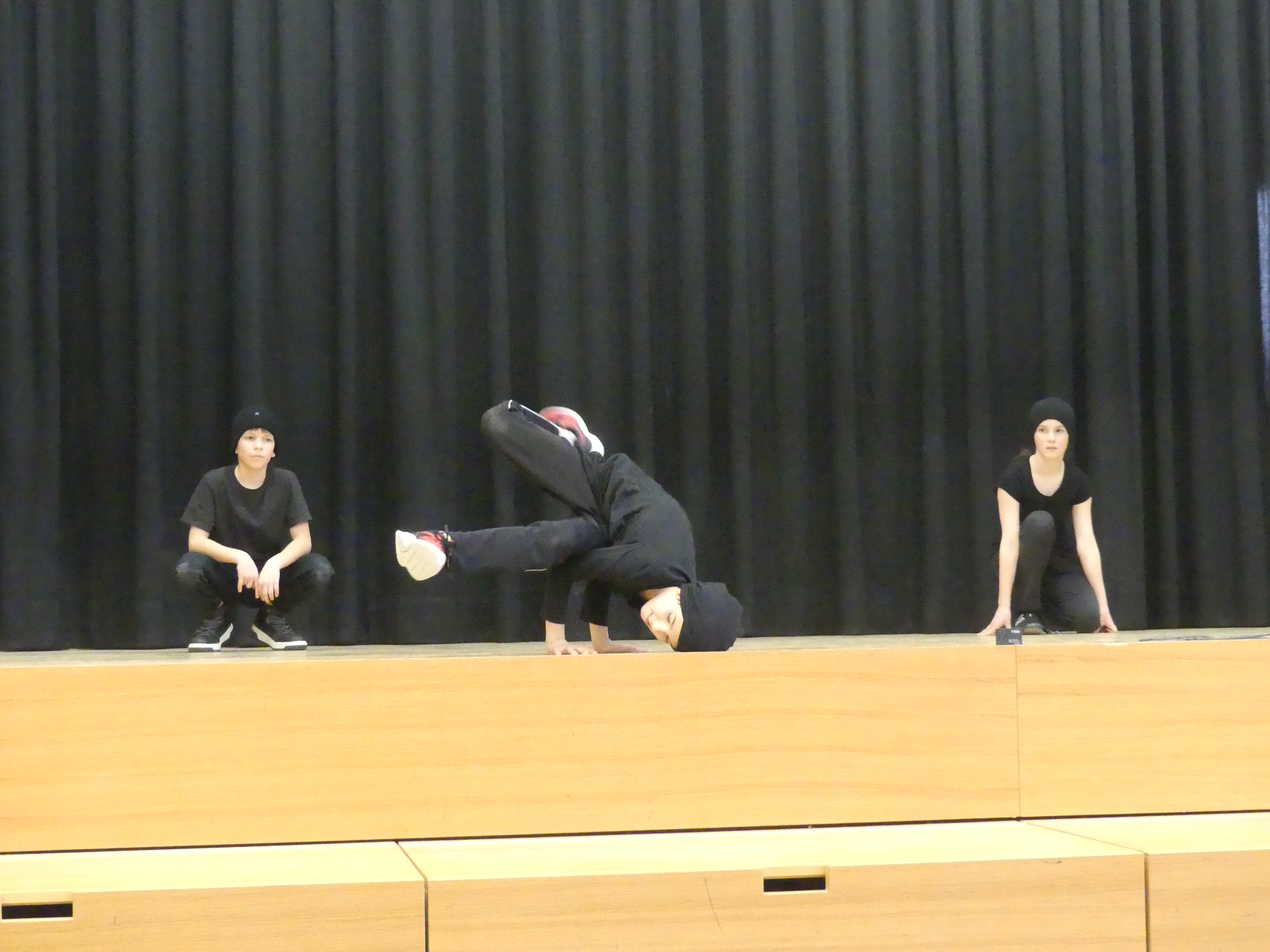 Der Auftakt des Tages war ein buntes Programm auf der Bühne in der Mensa, bei dem die 8er Mädels mit ihren Tänzen, die Breakdance-AG mit atemberaubenden Aufführungen, die Theater-AG mit einer inszenierten Probe und die Schulband „Brain Zone Music“ für eine tolle Stimmung sorgten.