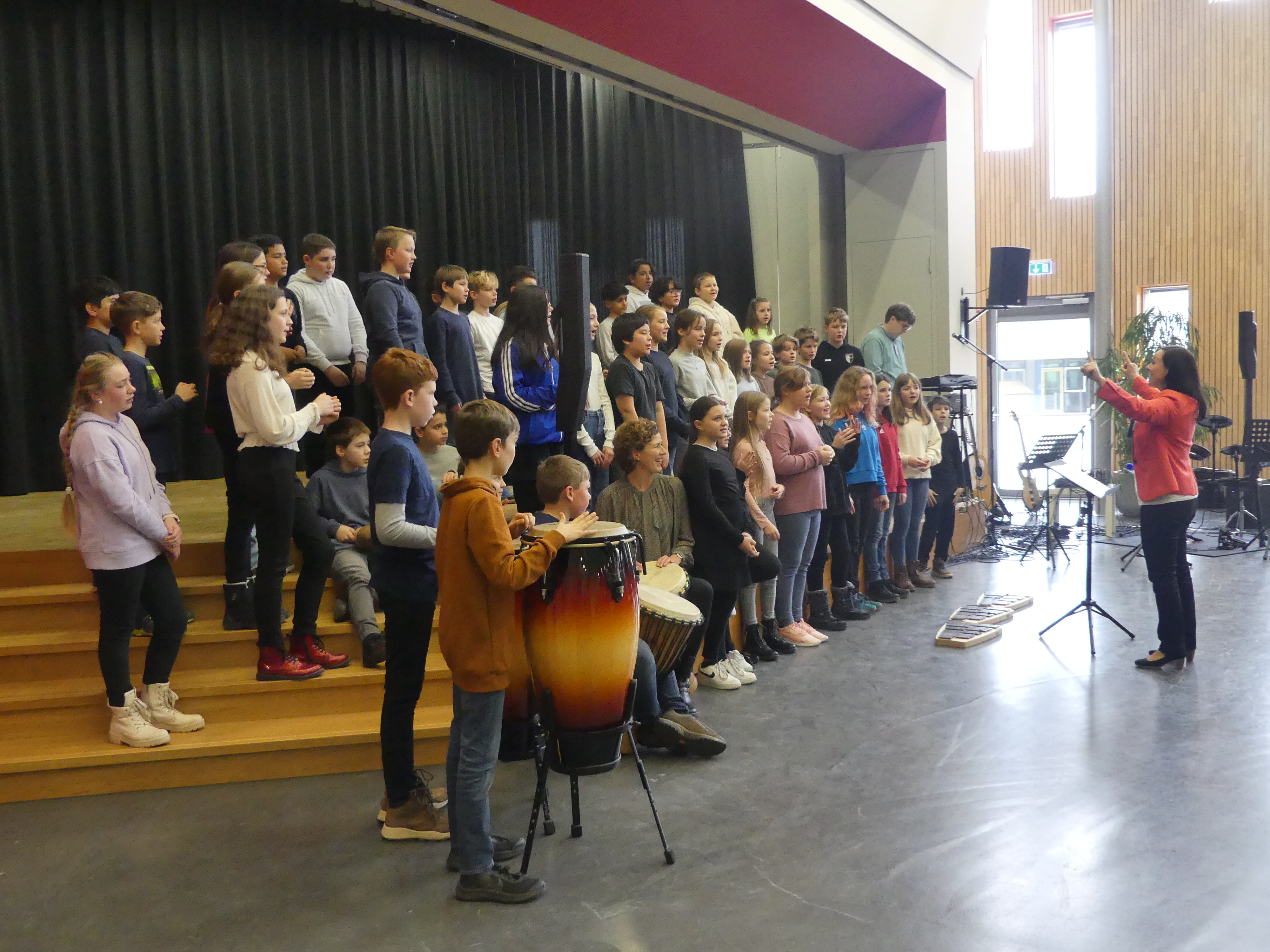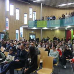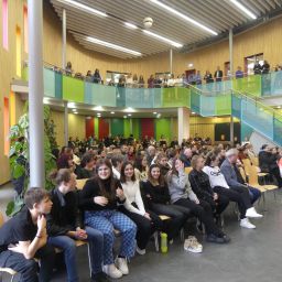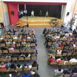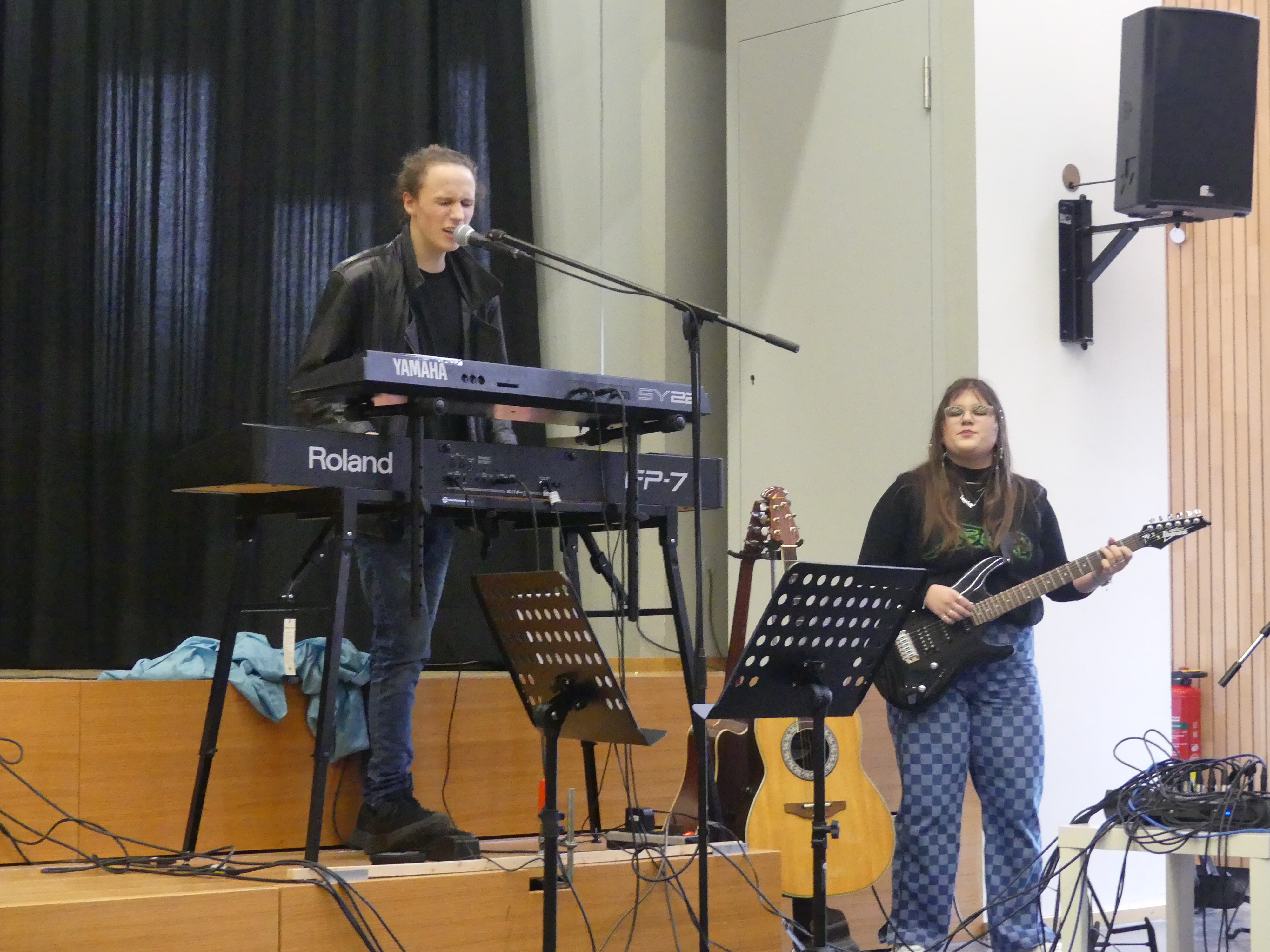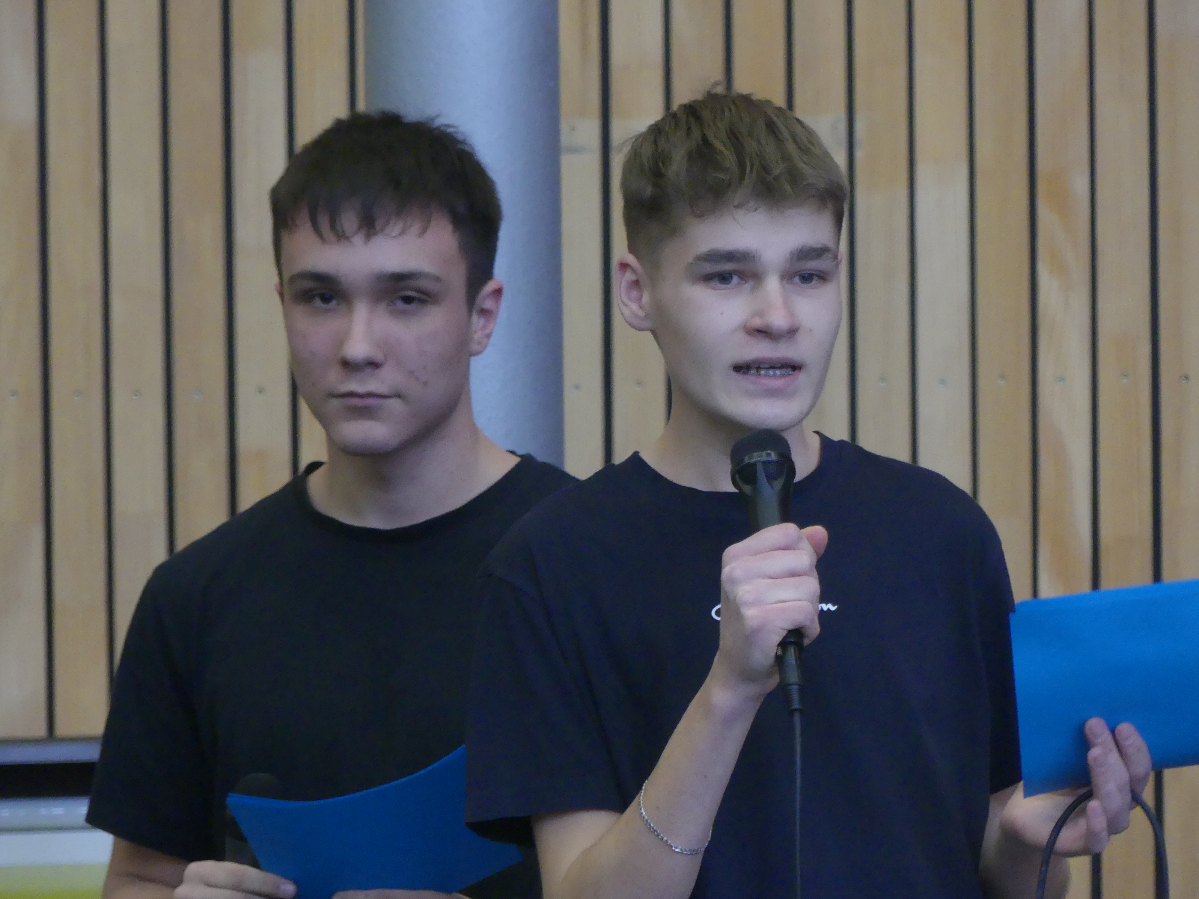 Der Auftakt des Tages war ein buntes Programm auf der Bühne in der Mensa, bei dem die 8er Mädels mit ihren Tänzen, die Breakdance-AG mit atemberaubenden Aufführungen, die Theater-AG mit einer inszenierten Probe und die Schulband „Brain Zone Music“ für eine tolle Stimmung sorgten.