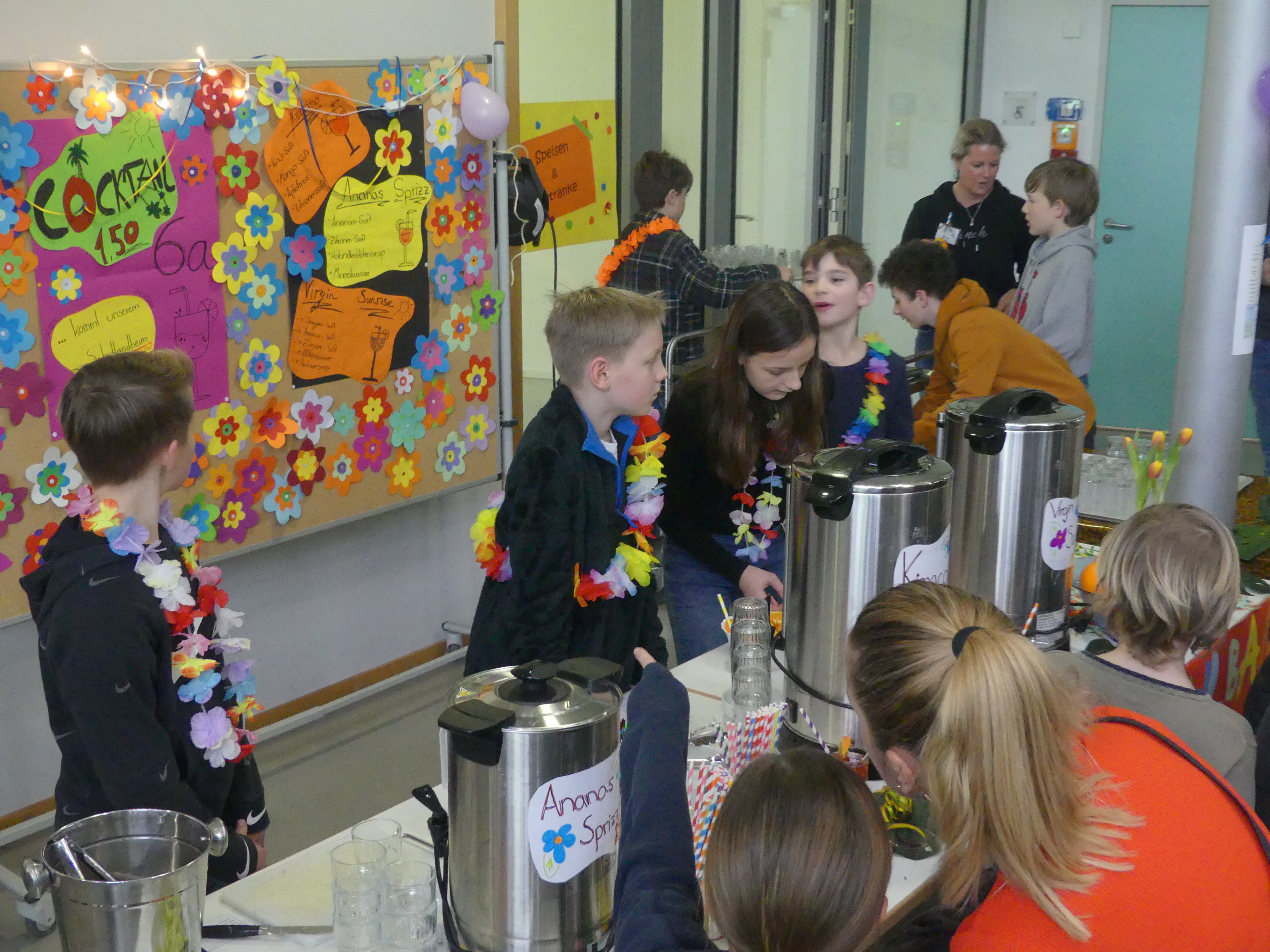 Ein besonderes Highlight des Tages waren die kulinarischen Angebote, bei denen die Schüler*innen und der Förderverein selbstgebackene Kuchen, süße und salzige Snacks anboten. Besonders beliebt war auch die Cocktailbar mit ihren leckeren, selbstkreierten Vitaminsäften.