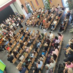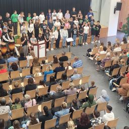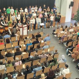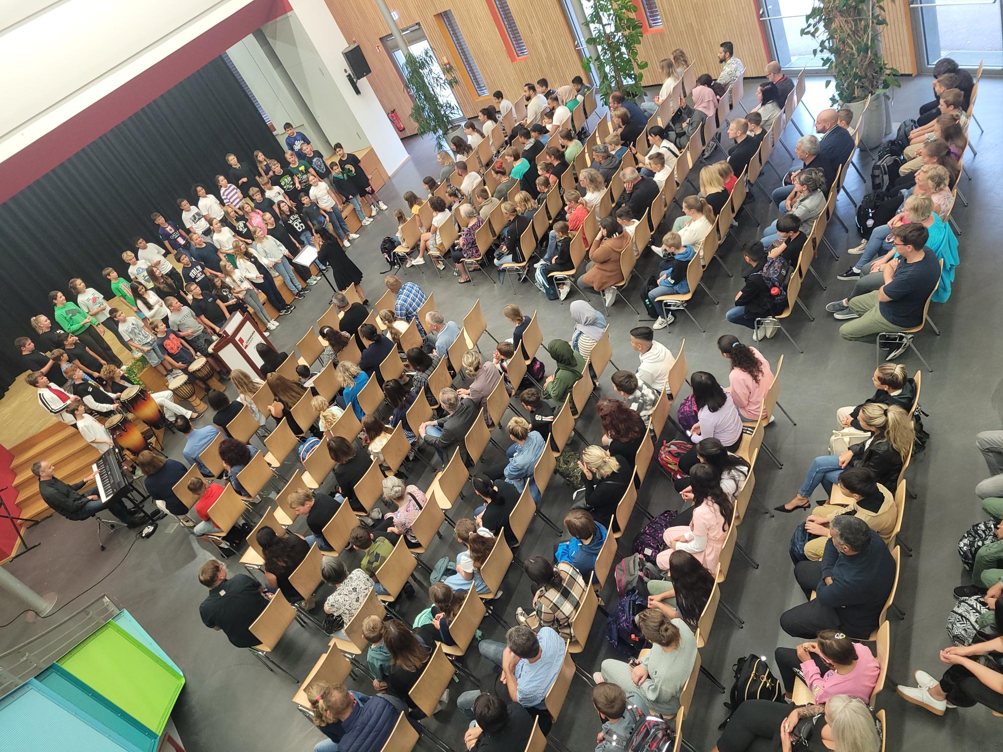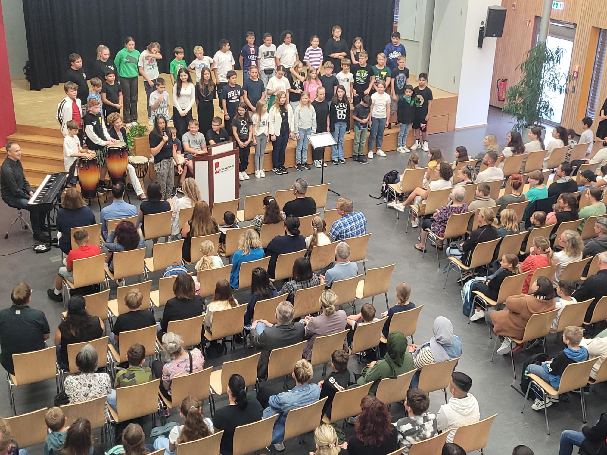 In einem festlichen Rahmen begleitet durch den Schülerchor wurden heute die Schülerinnen und Schüler unserer 5. Klassen empfangen. Der Förderverein verköstigte die Gäste mit Seelen und Kaffee, so konnten die neuen Eltern gleich miteinander ins Gespräch kommen.