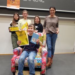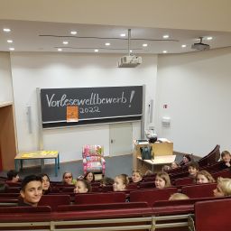 Am Freitag, 9.12.2022 fand nun endlich der Schulentscheid statt, wer Schulsieger des BZMs werden sollte. Die Klassensieger mussten ihren eignen, geübten Text und einen Fremdtext vorlesen. Alle Klassen trafen sich im Hörsaal. Die Aufregung war groß. Die beiden lasen fast Punktegelich vor. Wir jubelten und feuerten beide sehr laut an! Die Jury hatte eine sehr schwere Entscheidung zu treffen. Anhand von festgelegten Kriterien mussten die Jurymitglieder, die aus vier Siebtklässlern und zwei Lehrkräften bestand, letztendlich entscheiden. Fast punktgleich gewann Anton A.